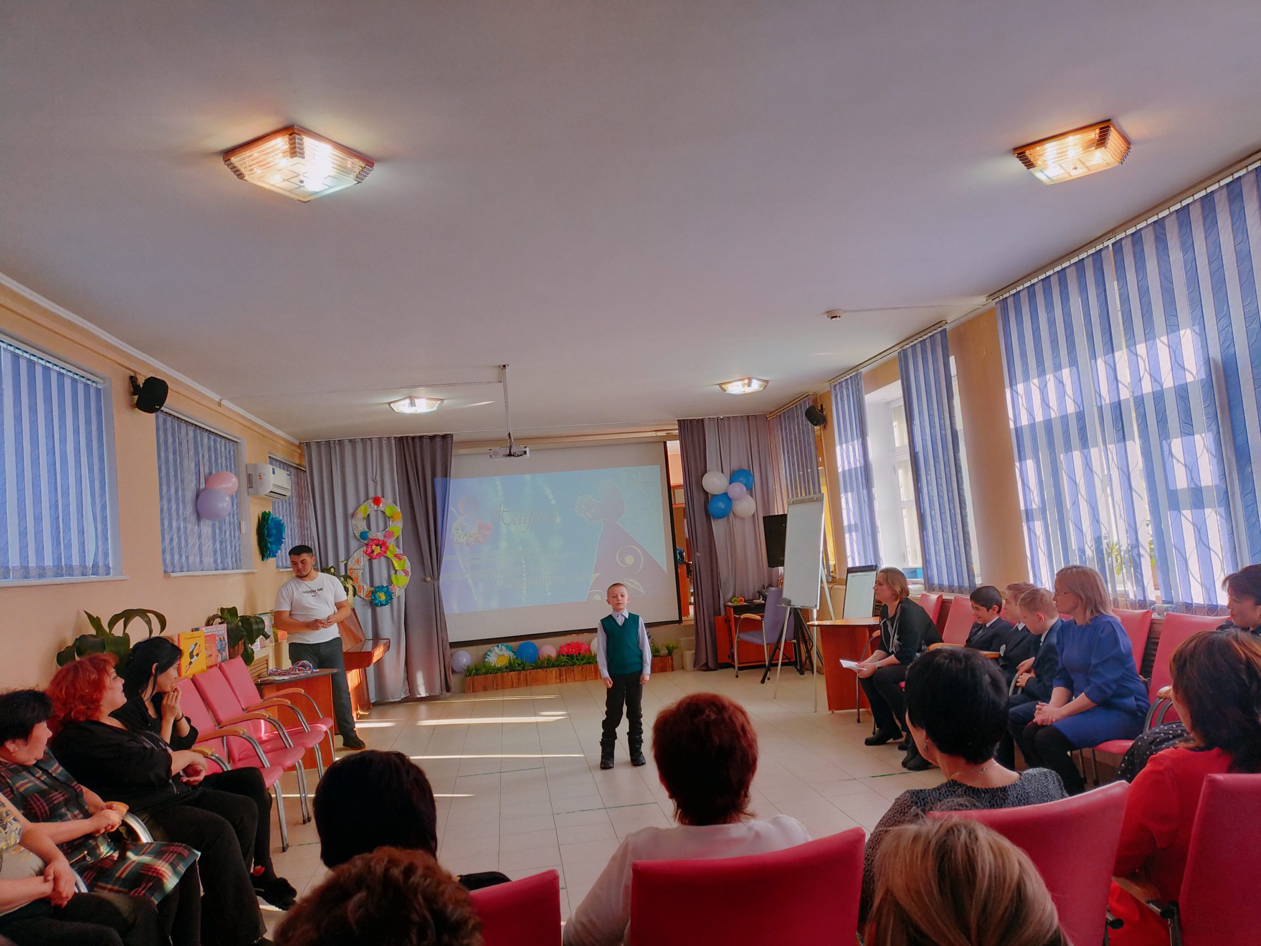 Прекрасную половину коллектива Областной детско-юношеской библиотеки от всего сердца поздравили наши дорогие читатели. В теплый, солнечный день в «Поздравительной открытке» прозвучали замечательные строки – стихи на английском языке продекламировал Роман Алифиров, участник языкового кружка «Play and learn English». Активисты «Школы чтения» – Матвей Ананьев, Али Каюмов, Тимофей Гриценко – тоже не остались в стороне. Руководителям кружков было вдвойне приятно в этот предпраздничный мартовский день.