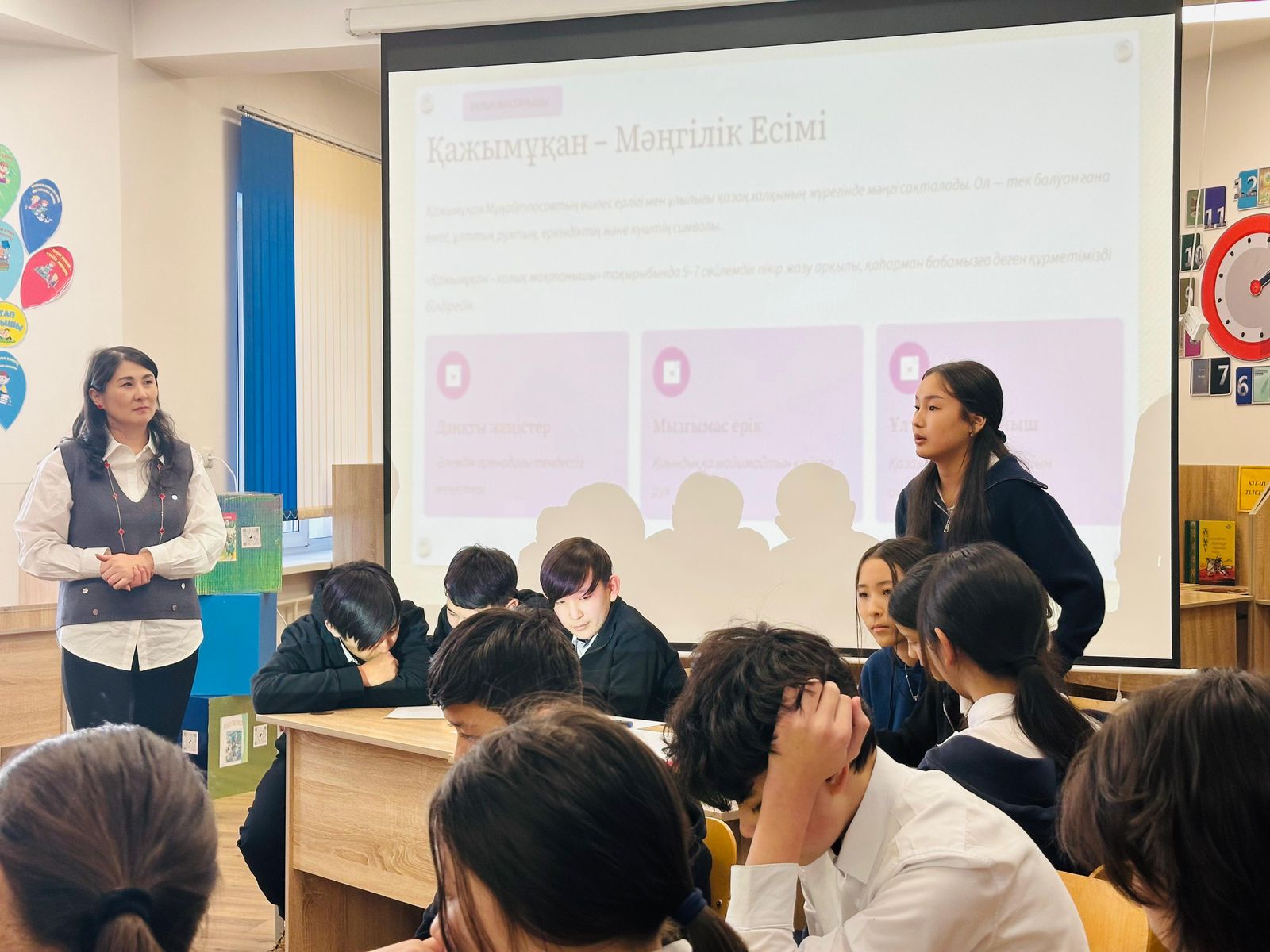 Конечная остановка «собрала» ребят на платформе «Wordwall», где они закрепили полученные знания о именитом борце. А в завершение встречи написали одноминутное эссе «Қажымұқан – халық мақтанышы».