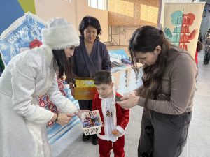 Ақшақар балаларға Аяз атаның арнайы тапсырмаларын орындауды ұсынды. Дұрыс жауап берген қатысушыларға тәтті сыйлықтар табысталды.