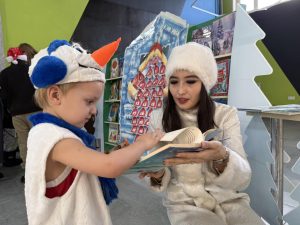 Көрме жылы да мерекелік атмосферада өтті. Ол балалар мен ата-аналарға ғажайыпқа толы әсер сыйлап қана қоймай, кітаптың сиқырлы әрі таңғажайып жаңалықтарға толы тұтас бір әлем екенін еске салды. Іс-шара барысында «Жаңа жылды жақсы кітаппен қарсы алу — шабыт пен тың білімге бастайтын жарқын қадам» деген ойға айрықша мән берілді.