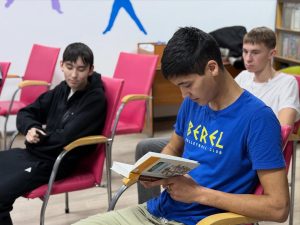 5 қараша күні студияның жайлы атмосферасында Ж. Нәжімеденовтің «Кішкентай» романына арналған кездесу өтті. Қатысушылар шығарманы үзіндімен оқу арқылы тыңдап, негізгі эпизодтарды талқылап, кейіпкерлер туралы өз ойларымен бөлісті.Балалық шақ, адамгершілік құндылықтар, Отанға деген сүйіспеншілік және адам рухының күші туралы әңгіме шабыттандырарлық диалогқа ұласты. Студенттер жанрлық кітаптарға ерекше қызығушылық танытып, кездесуден кейін оқуға ниеттенген шығармаларын таңдады.