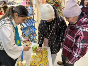 Қатысушылар ұсынылған кітаптарды пайдалана отырып, арнайы дайындалған сұрақтарға жауап беріп, өз білімдерін сынады. Сонымен қатар, сауда кешеніне келген қонақтарға мерекелік көңіл күй сыйлаған әсем ән-күй мен ұлттық билер ұсынылды.