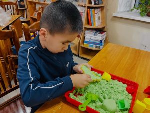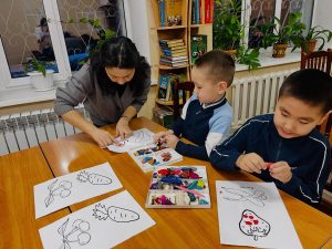 Балалармен «Тіс тазалау», «Құм терапиясы», «Ермексазбен жұмыс» тағы да басқа тапсырмалары бірлесе орындалды. Бұл тапсырмалар ерекше балалардың сенсорлық және моторлық жүйесінінің дамуын, зейін мен есте сақтау қабілетін, тілдік және коммуникативтік дағдыларын, өз-өзіне сенімділігін арттыруға арналды. Шара соңы сергіту сәтімен аяқталды.